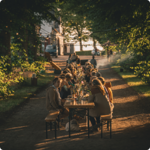 Mulighederne er mange! I kan tage del i produktionen, smage på det hele, holde møder, vandre i skoven, lave mad over bål eller overnatte på Hovedbygningen.